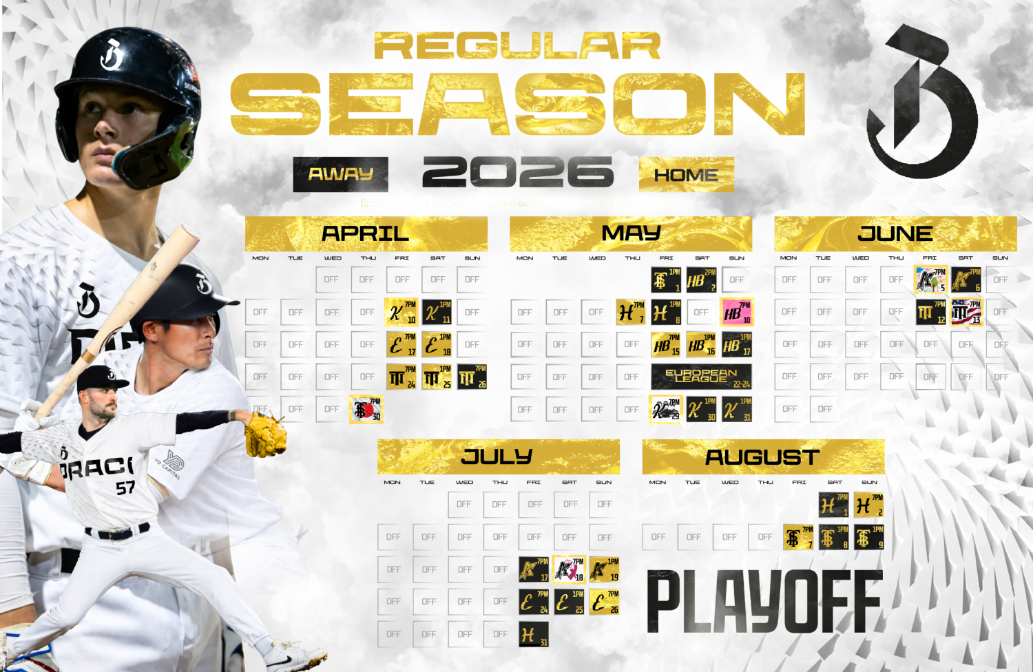 Už v pátek Draci poprvé vyběhnout na hřiště v sezóně 2026! V letošní sezóně nás čeká spousta nových výzev a velké dřiny. Letos si naše Áčko mimo Extraligy, kde se budeme snažit dorovnat rekord New York Yankees s 27 tituly, zahraje i Evropskou ligu, která se odehraje v novém formátu!